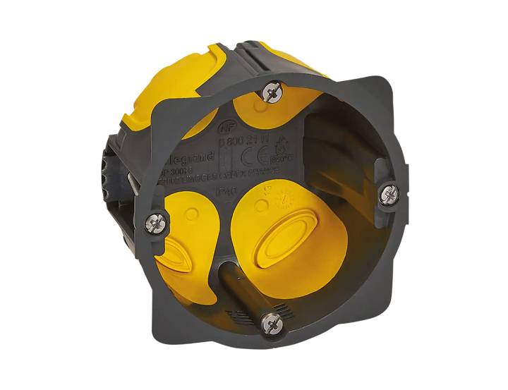 Les boîtes Eco Batibox de 50 mm de profondeur offrent un volume confortable pour le câblage et les connexions, y compris lorsque plusieurs gaines arrivent au même point. Elles sont prévues pour les murs creux et un perçage Ø67 mm, afin d’installer rapidement des appareillages standards sans ajustement. Selon les caractéristiques fabricant, elles acceptent le montage d’appareillage à vis ou à griffes.