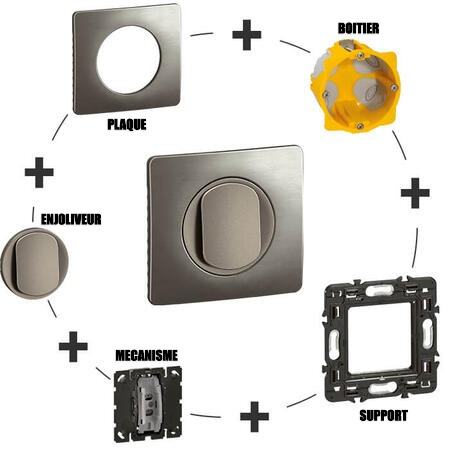 Commande de volets roulants Céliane à compléter d'un support universel Batibox et à combiner avec un enjoliveur et une plaque de finition