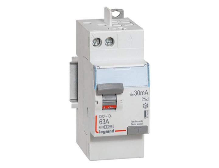 LEGRAND - Interrupteur différentiel DX³-ID arrivée haut à vis et départ haut automatique - 2P 230V~ 63A typeAC 30mA - 2 modules - 411650