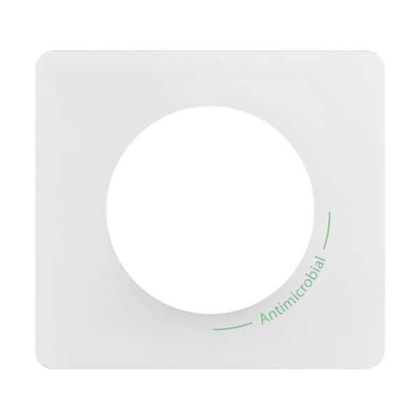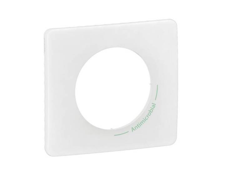 Plaque Antimicrobienne Céliane™ spécialement conçue pour les lieux exigeant un haut degré d’hygiène avec l’élimination des bactéries. À associer à un support universel Batibox, un mécanisme et un enjoliveur Céliane